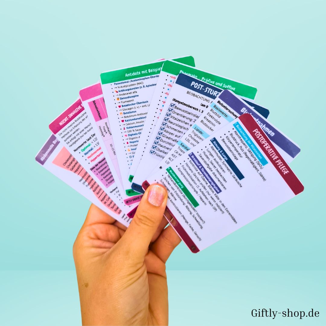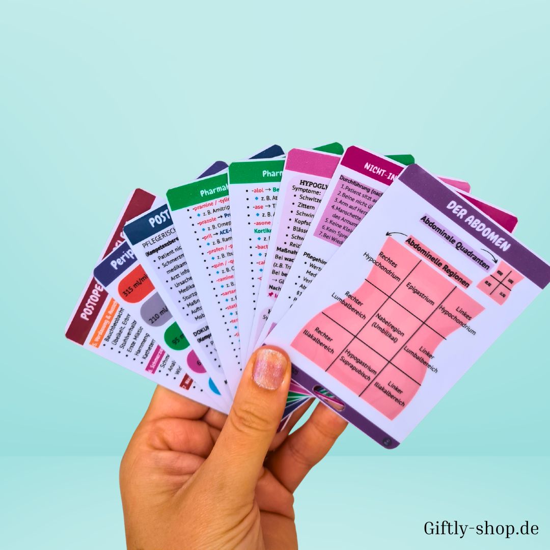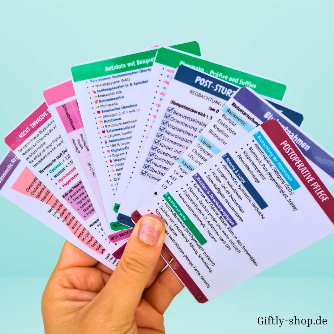 Dieses kompakte Lernkarten-Set wurde speziell für Pflegekräfte, Auszubildende in der Pflege (Pflege-Azubi) und Medizinstudenten entwickelt – ideal für den täglichen Einsatz im Klinikalltag.